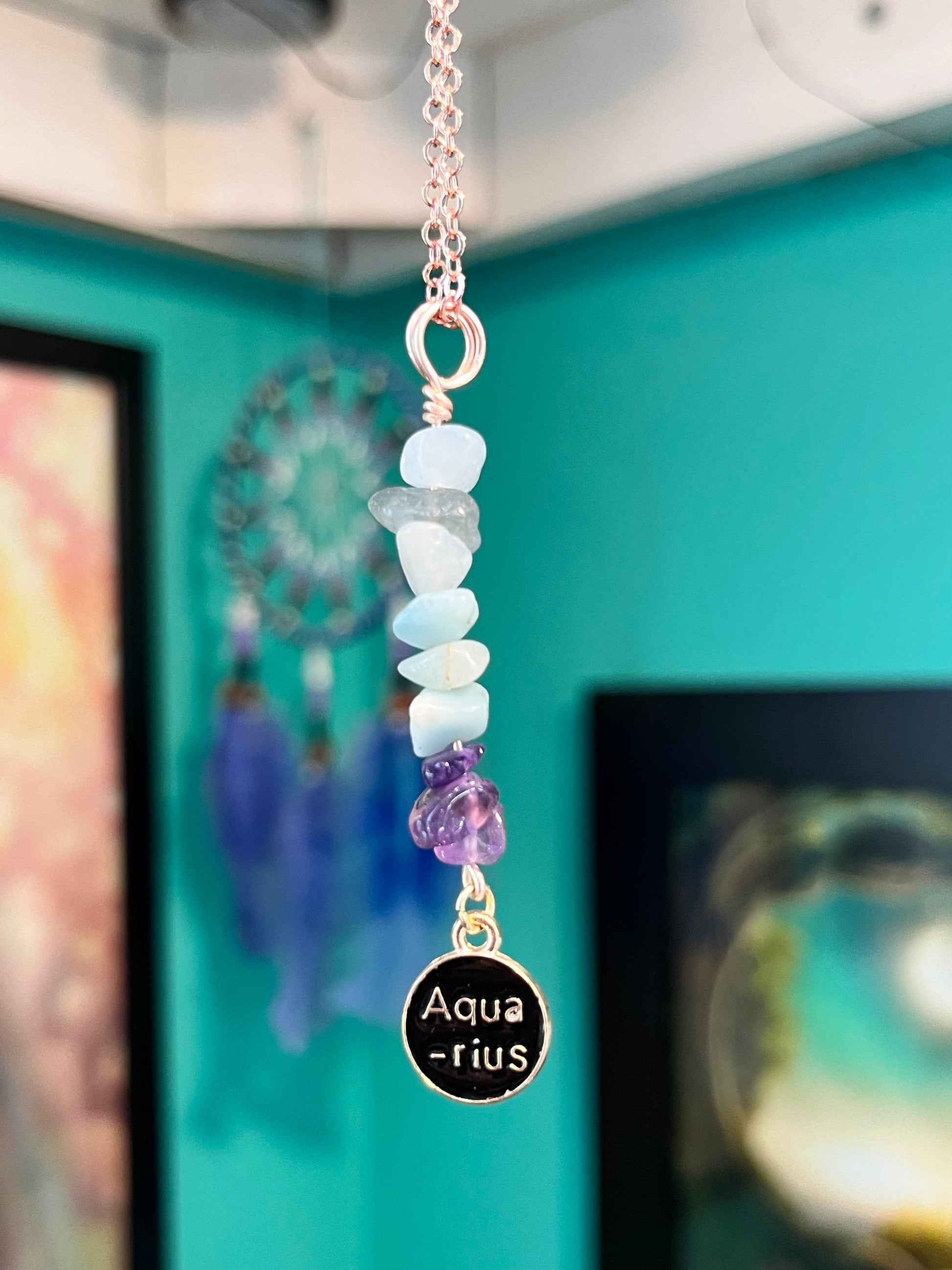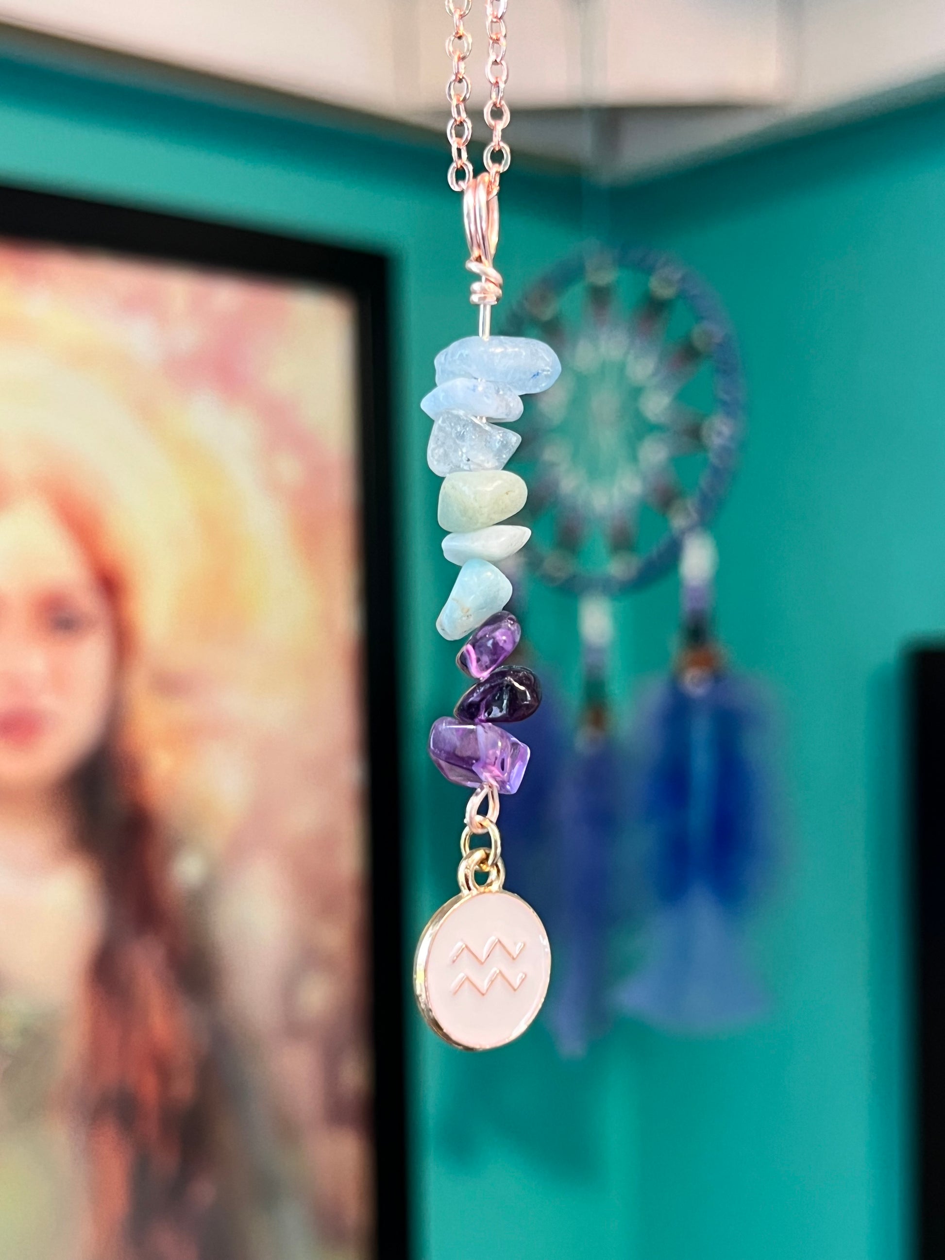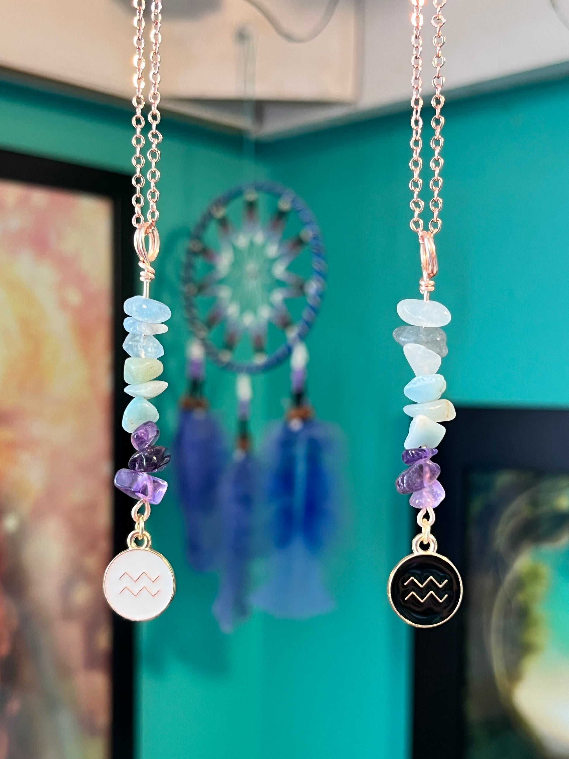 Aquarius Crystal Necklace I Handmade Wire Wrapped Zodiac Jewelry I Crystals for Aquarius
