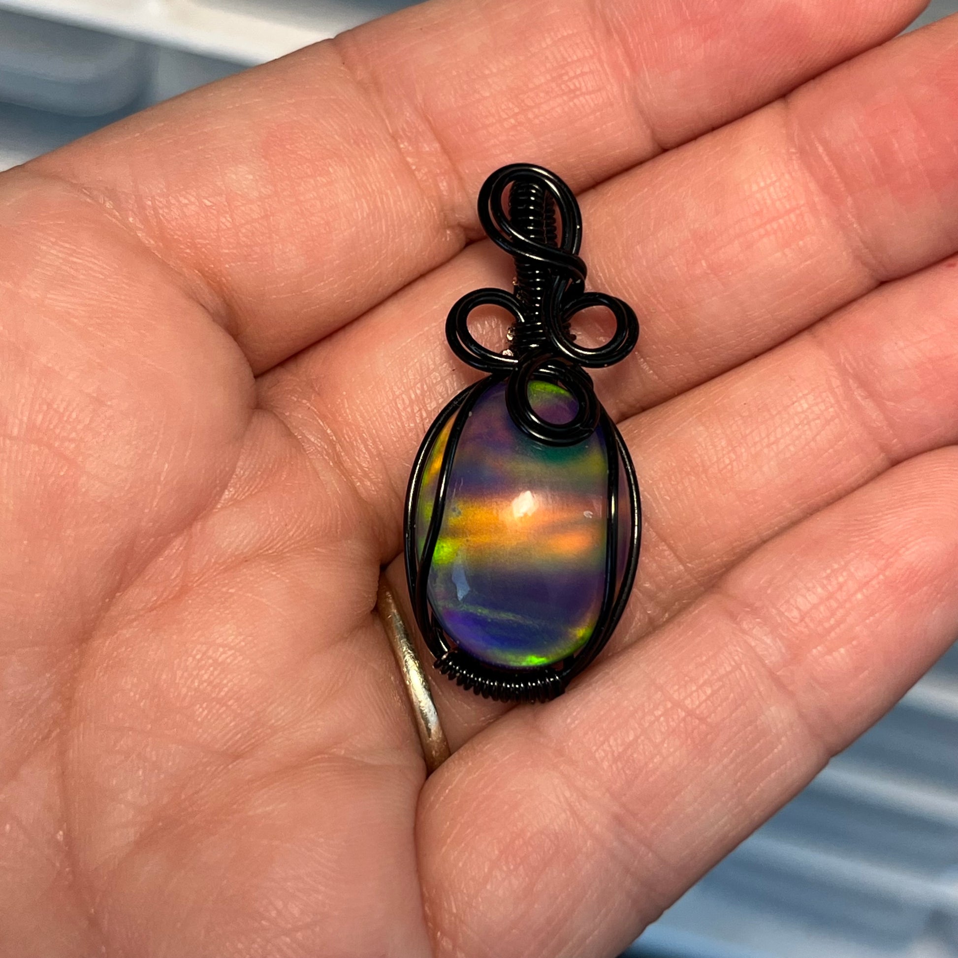 Aurora Opal Necklace | Wire Wrapped Crystal Healing Pendant with Chain | Uplifting ~ Creativity ~ Discovery
