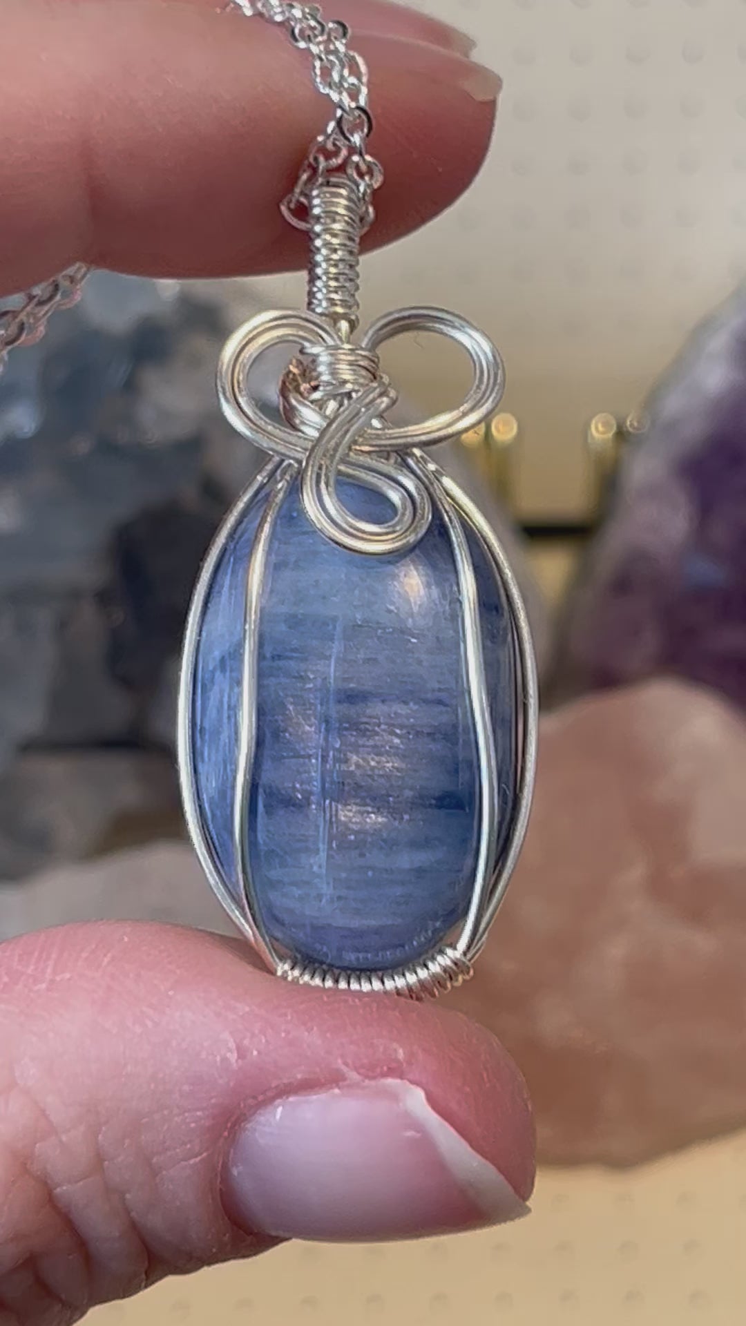 Blue Kyanite Necklace, Wire Wrapped Crystal Pendant with Chain, Meditation ~ Intuition ~ Calming