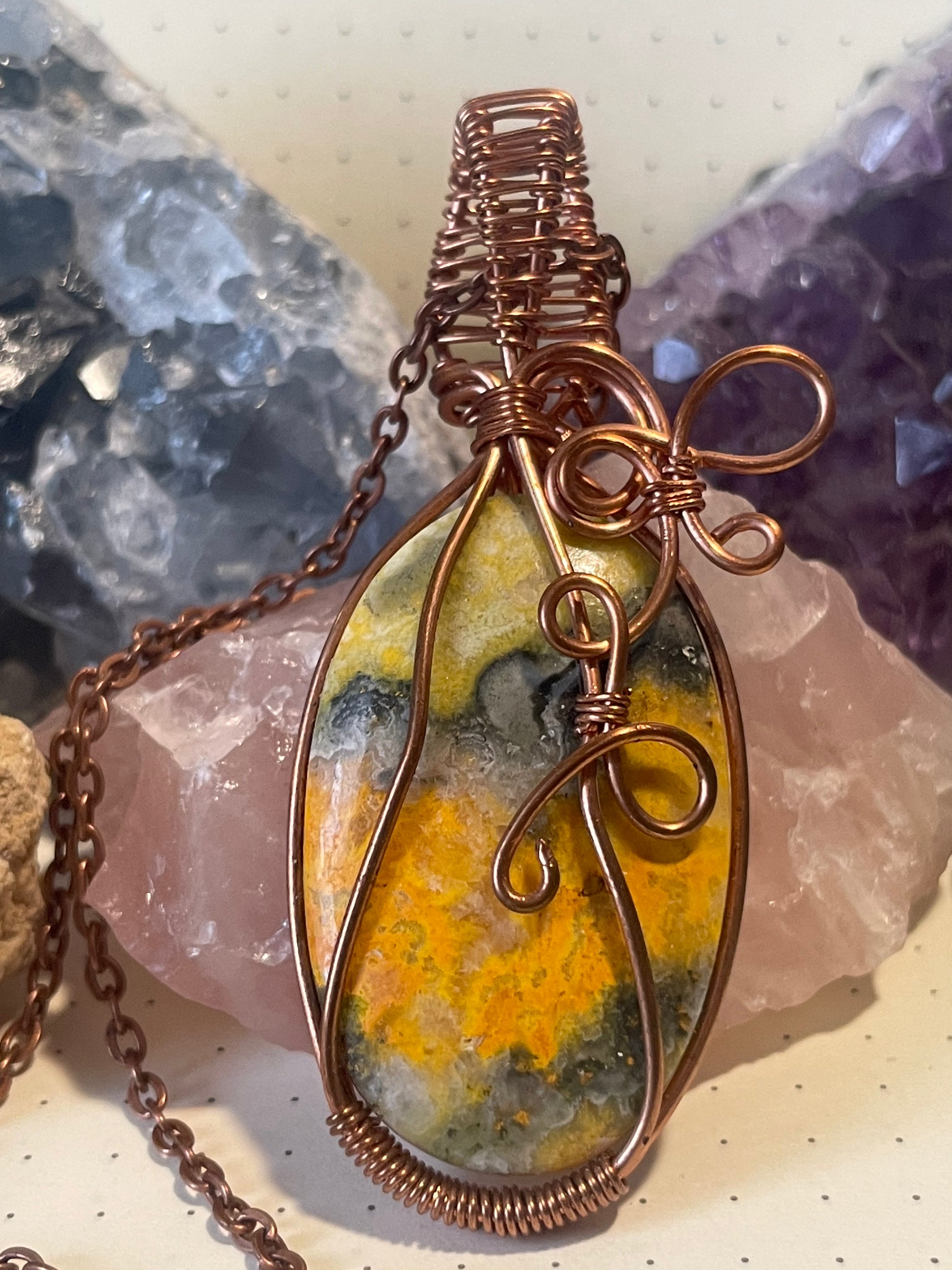 Bumble Bee Jasper Necklace, Wire Wrapped Crystal Pendant with Chain, Nurturing ~ Self-Esteem ~ Accept Change