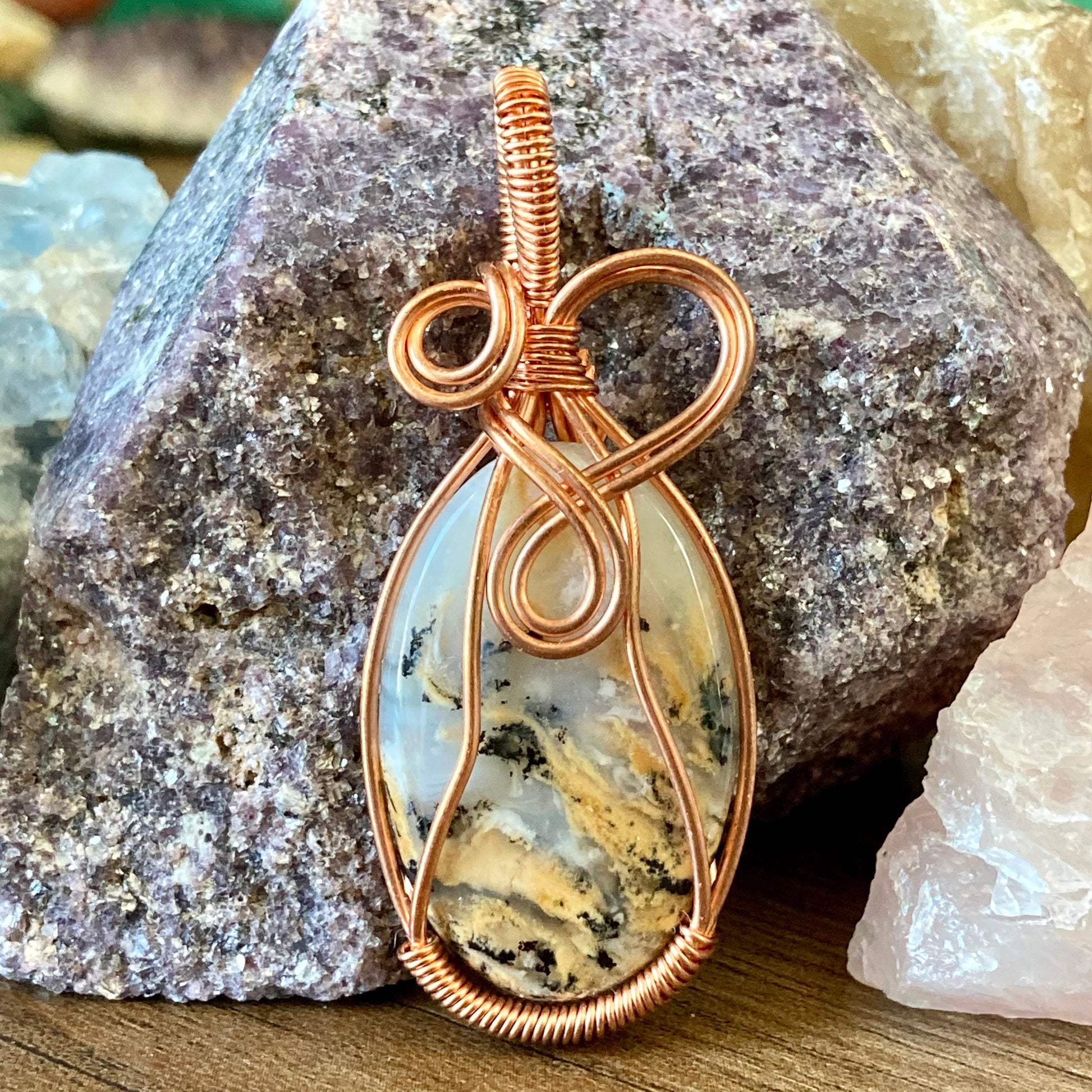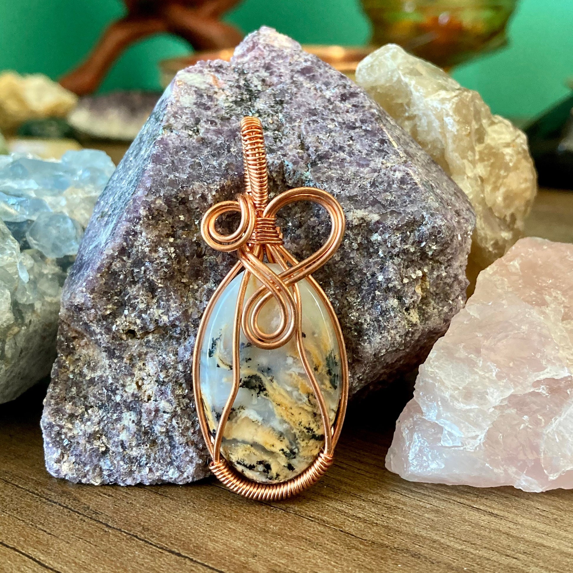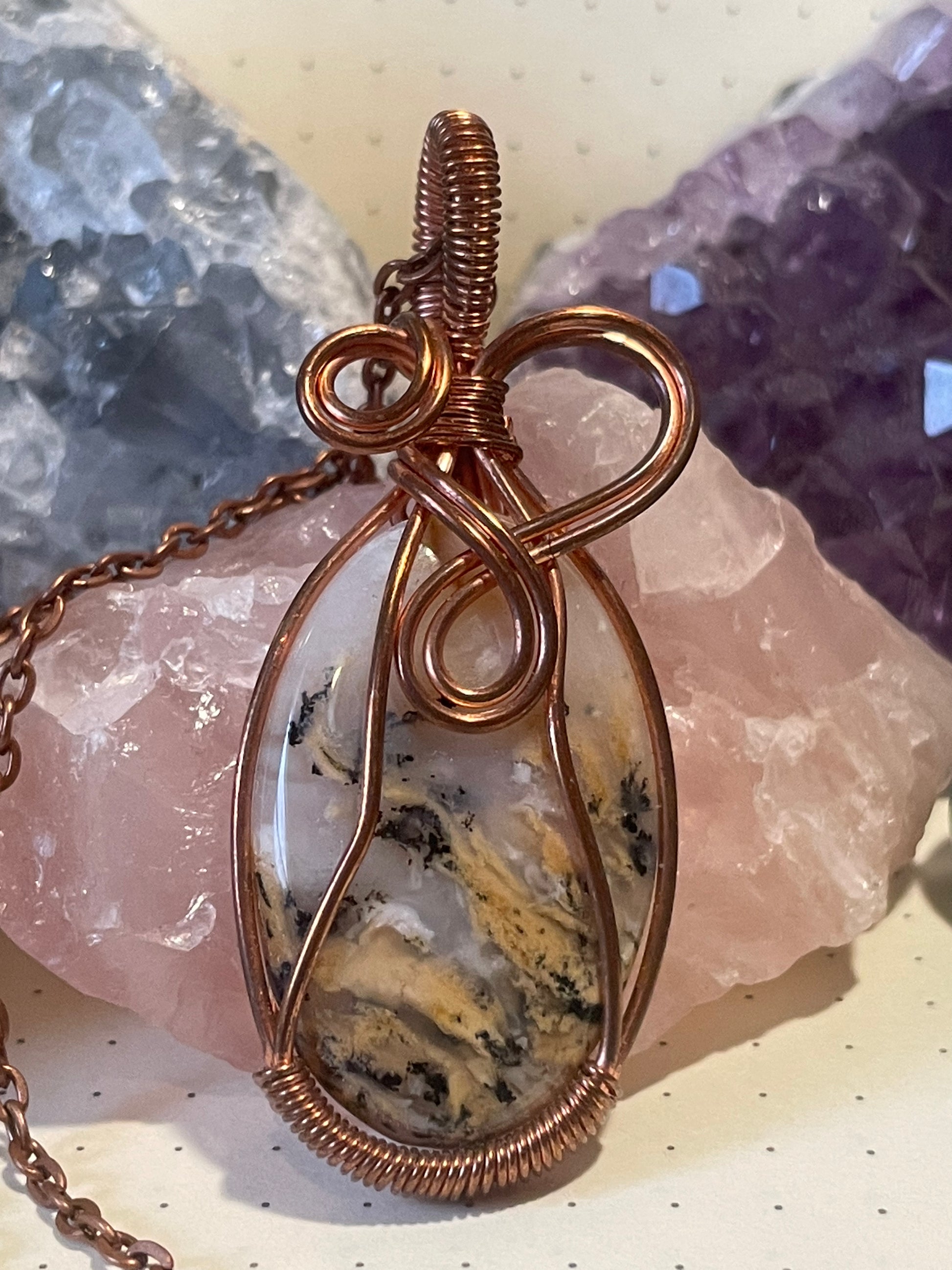 Dendritic Tiger Agate Necklace, Wire Wrapped Crystal Pendant with Chain, Abundance ~ Perseverance ~ Acceptance