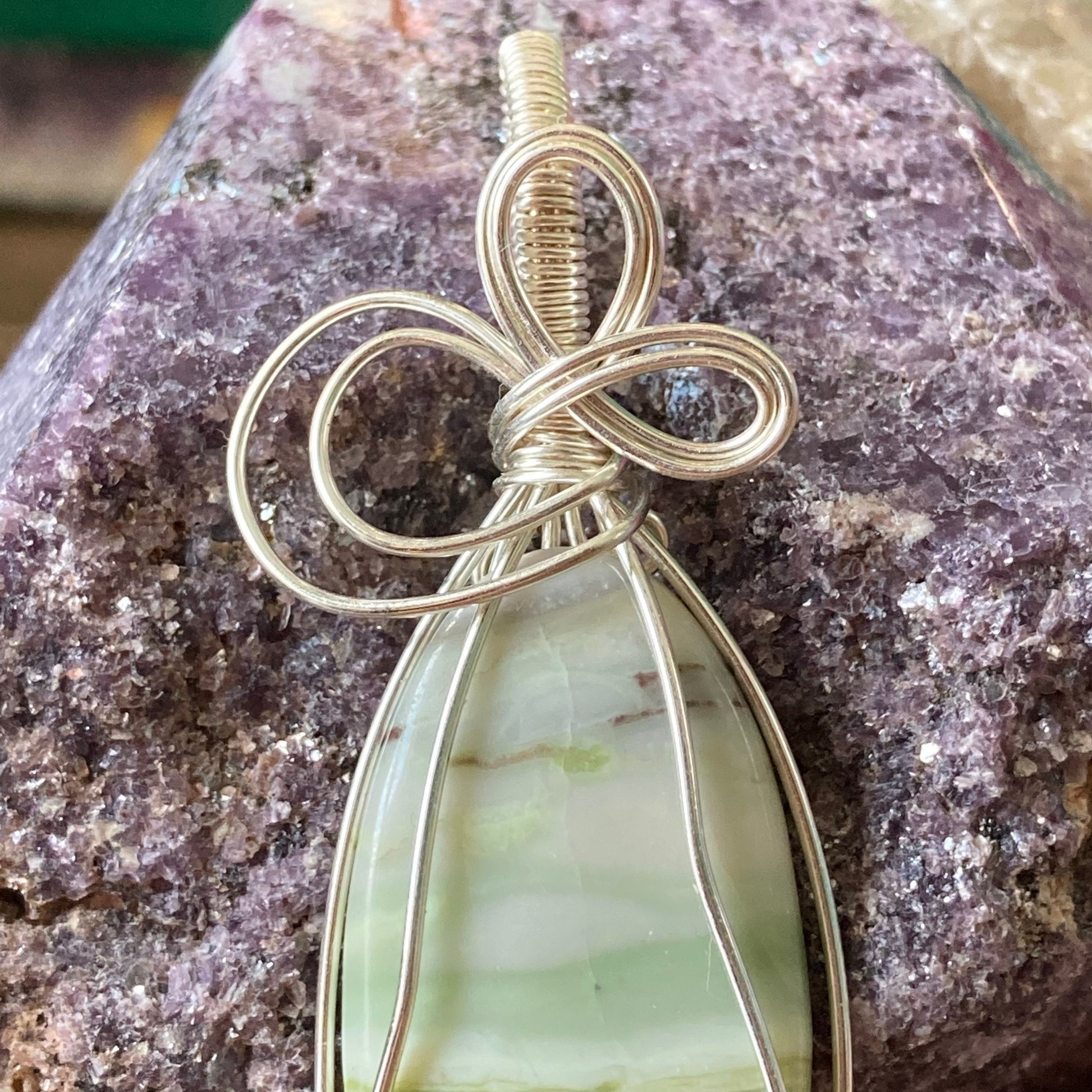 This handmade wire wrapped pendant is made with silver plated copper wire and natural crystals that are chosen individually for each specific healing energy. While creating each piece, I concentrate on charging each crystal with the corresponding healing energy and placing intention to help whomever this piece was meant to be created for. When finished, each crystal pendant is cleansed with incense and then charged in the Sunlight and Moonlight. Each pendant comes with a chain.