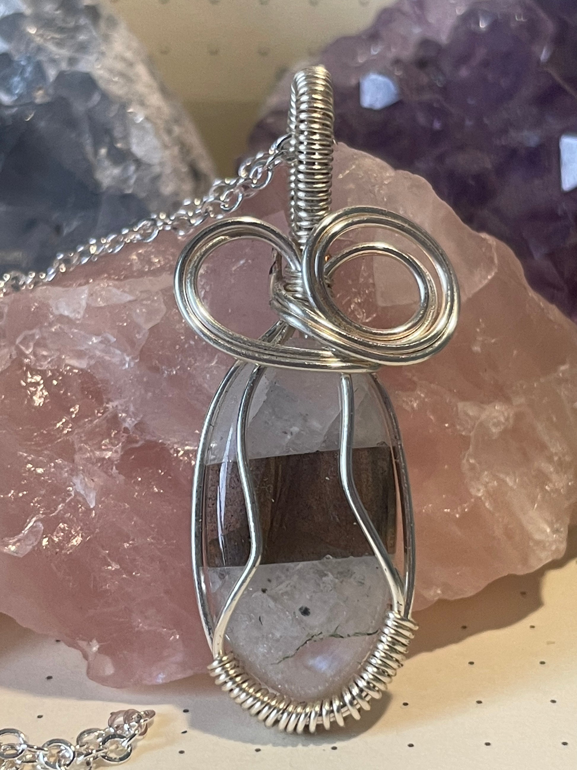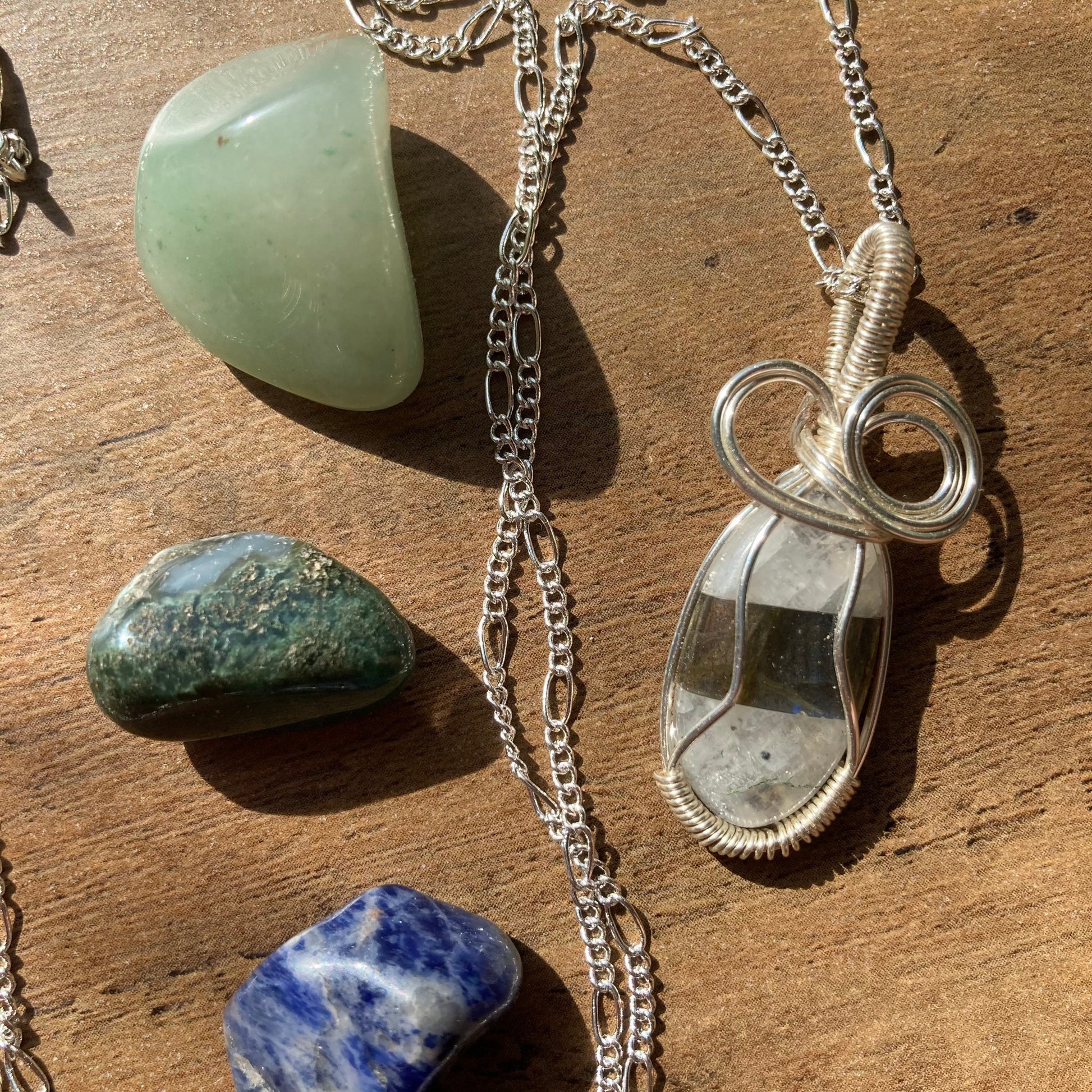 This handmade wire wrapped pendant is made with silver plated copper wire and natural crystals that are chosen individually for each specific healing energy. While creating each piece, I concentrate on charging each crystal with the corresponding healing energy and placing intention to help whomever this piece was meant to be created for. When finished, each crystal pendant is cleansed with incense and then charged in the Sunlight and Moonlight. Each pendant comes with a chain.