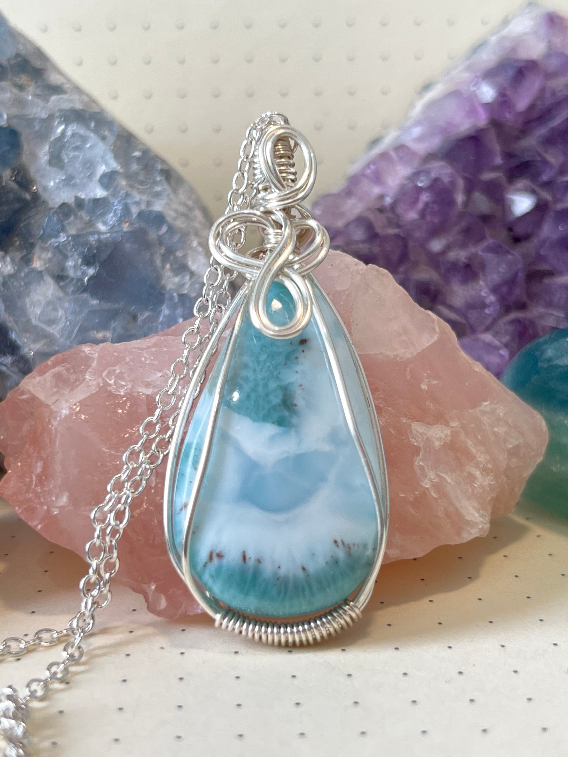 Larimar Necklace | Wire Wrapped Crystal Healing Pendant with Chain | Relaxing ~ Brings Peace ~ Removes Guilt & Fear