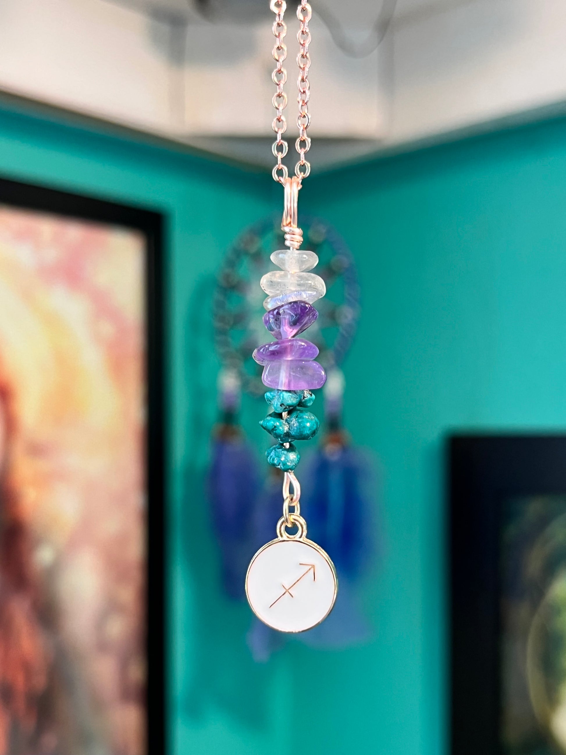 Sagittarius Zodiac Crystal Necklace – Rose Gold Wire Wrapped Charm for Your Star Sign ✨♈♉♊♋♌♍♎♏♐♑♒♓✨