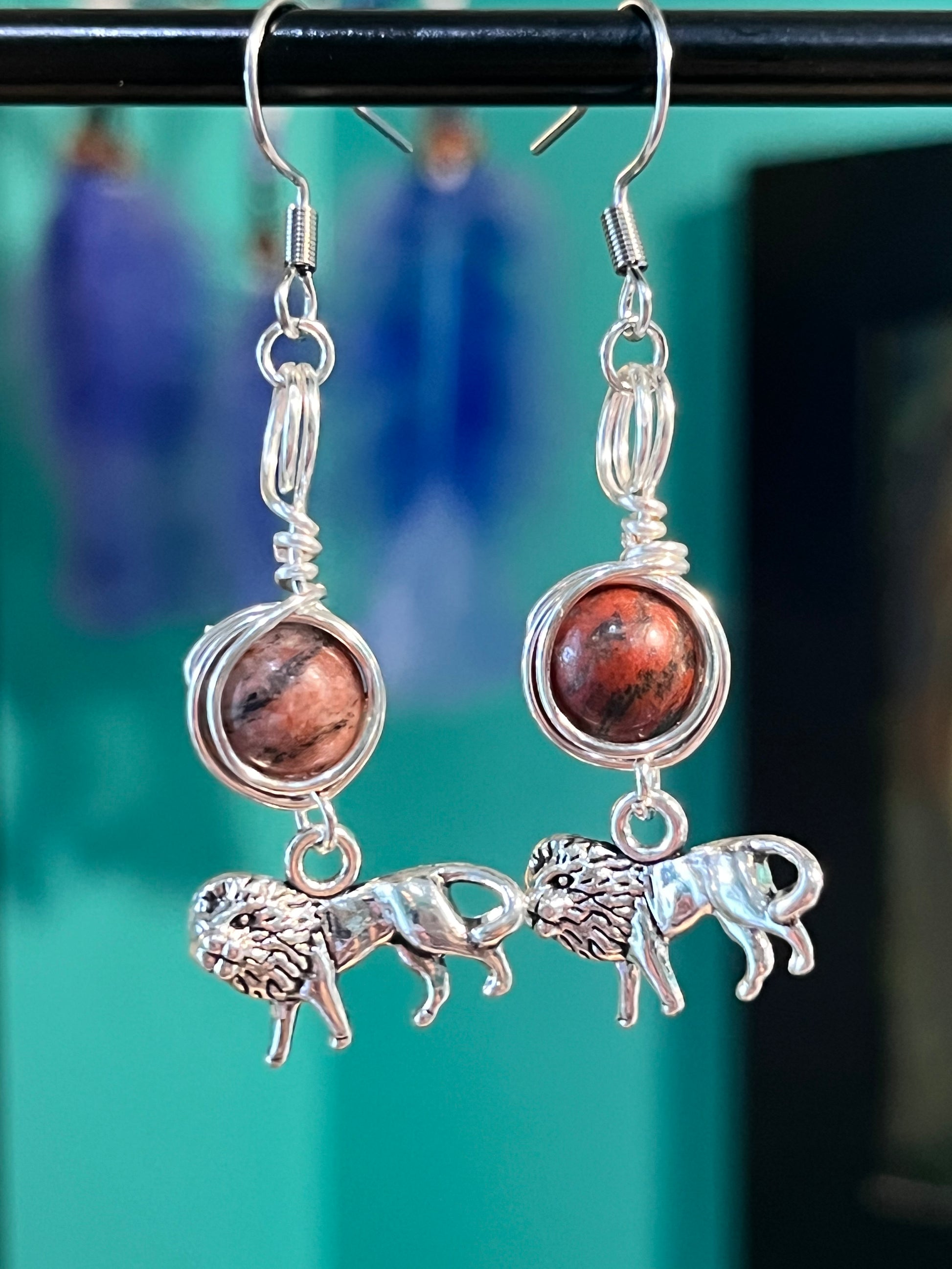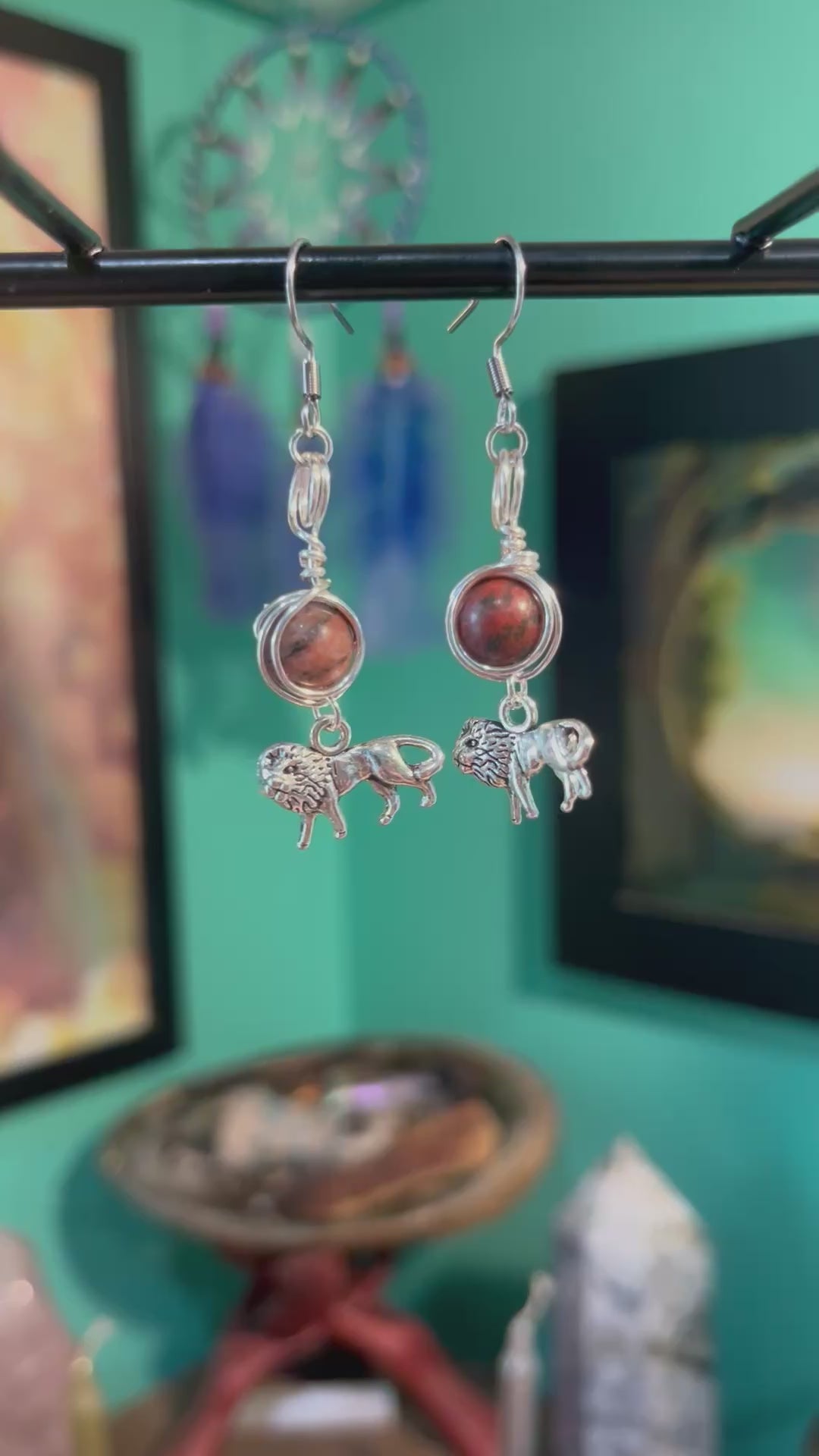 Sekhmet Goddess Earrings – Devotional Crystal & Charm Jewelry – Hypoallergenic Witchy Earrings