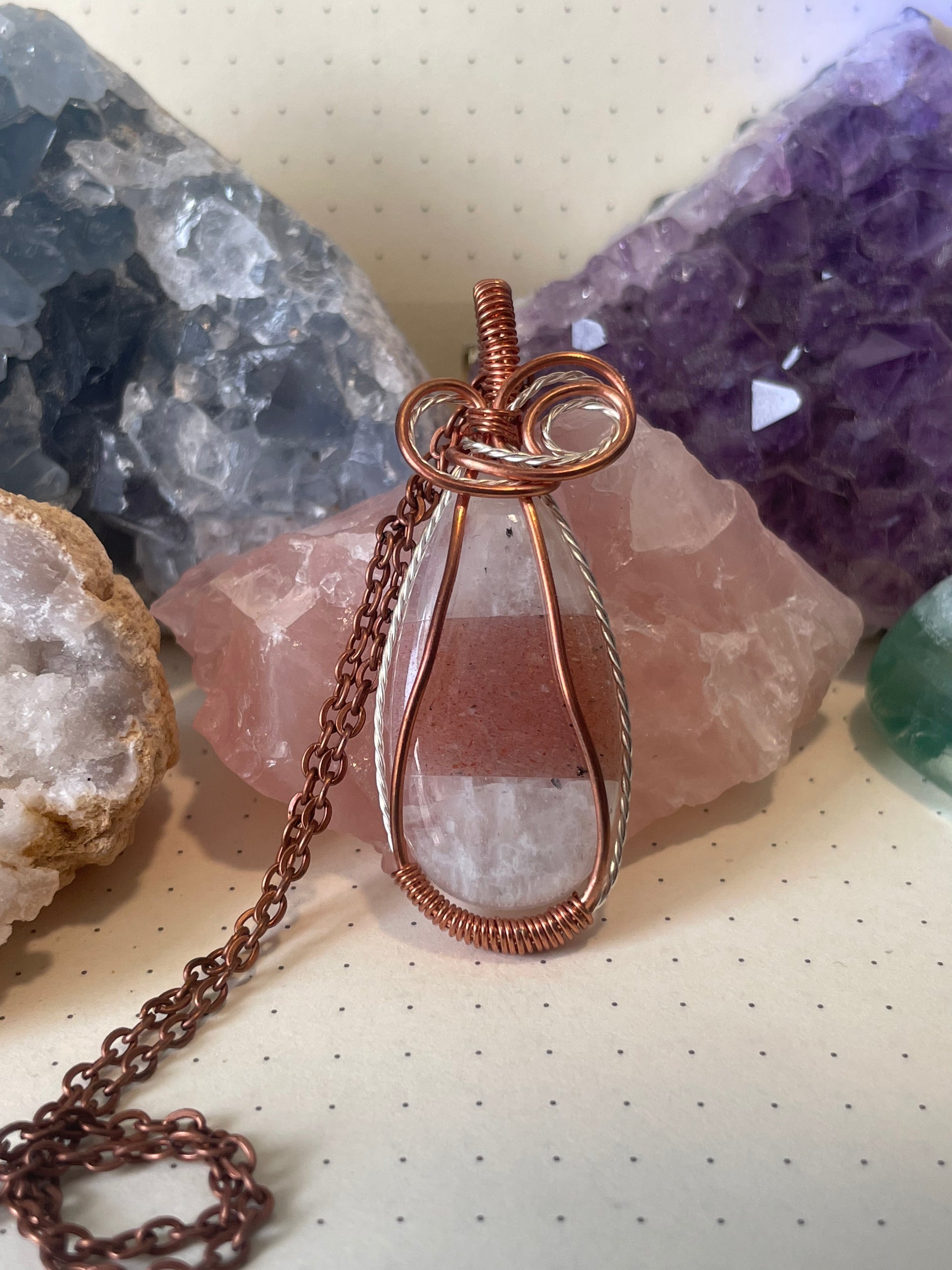 This handmade wire wrapped pendant is made with silver plated copper wire and natural crystals that are chosen individually for each specific healing energy. While creating each piece, I concentrate on charging each crystal with the corresponding healing energy and placing intention to help whomever this piece was meant to be created for. When finished, each crystal pendant is cleansed with incense and then charged in the Sunlight and Moonlight. Each pendant comes with a chain.