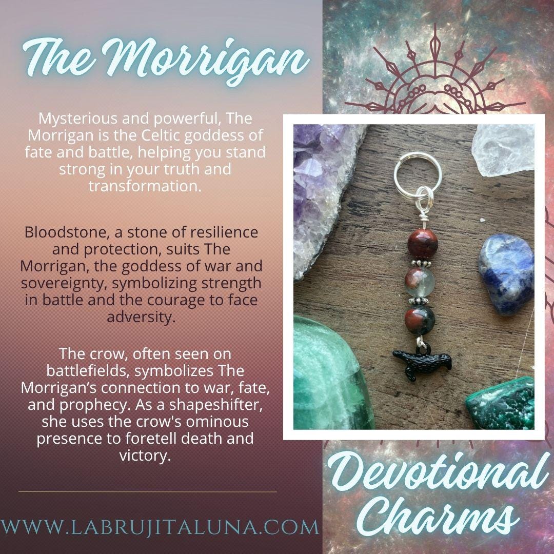 The Morrigan Devotional Keychain • Crystal Charm • Goddess Talisman • Witchy Gift • Spiritual Altar Accessory • Bloodstone & Crow Symbol